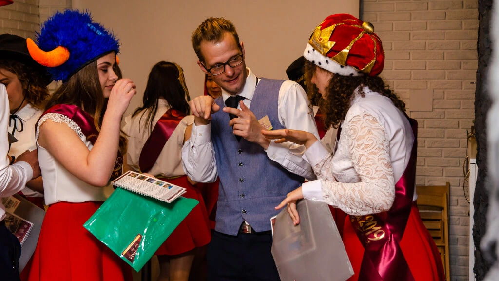 На игре выпускников встречают ведущие — уже в стилистике квеста. Они настраивают на нужный лад, раздают знаменитые гангстерские шляпы, вуалетки и другие тематические аксессуары всем желающим. Ребят делят на команды и каждой достается своя уникальная легенда. Теперь им придется постараться, чтобы добится целей!